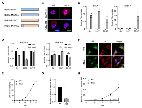 3.5. The NLS in PaBV-4 N Reduces rBoDV-1 Replication in Mammalian Cells