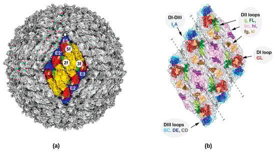 - Zhang, Y.; Zhang, W.; Ogata, S.; Clements, D.; Strauss, J.H.; Baker, T.S.; Kuhn, R.J.; Rossmann, M.G. Conformational changes of the flavivirus E glycoprotein. Structure 2004, 12, 1607–1618. [Google Scholar] [CrossRef] [PubMed]