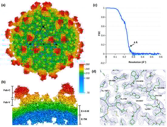 2.6. Cryo-EM Reconstruction and Structure Refinement of ZIKV-ADI-Fab30056 Complex