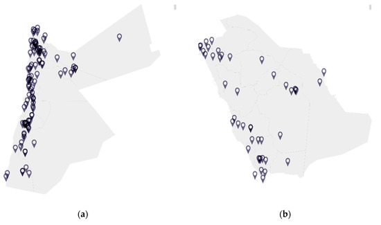 Distribution of bat species in (a) Jordan and (b) Saudi Arabia.