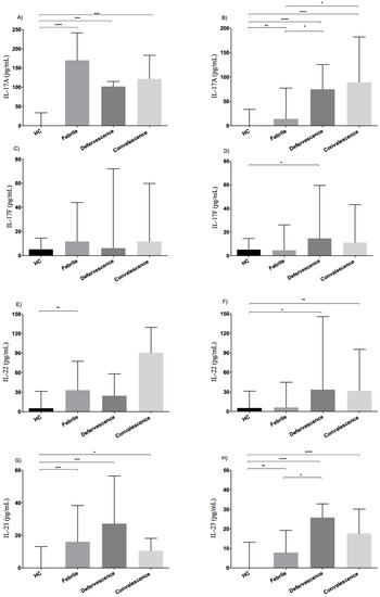 3.3. Dynamics of Production of IL-17-Related Cytokines at Different Phases of Illness