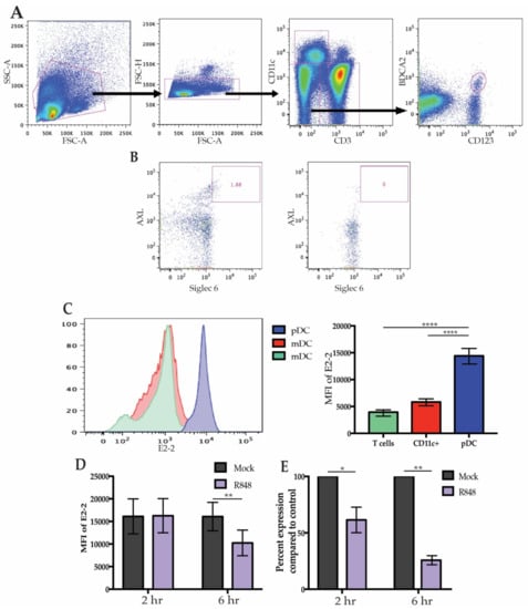 3.1. High E2-2 Expression Is Distinctive to pDCs and Is Downregulated after Stimulation