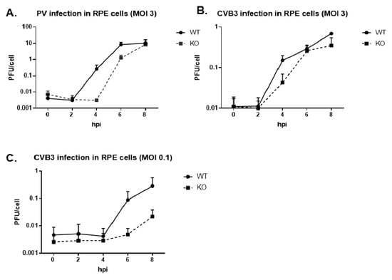 3.3. Poliovirus Titers Are Comparable in WT and KO RPE cells after Multiple Replication Cycles