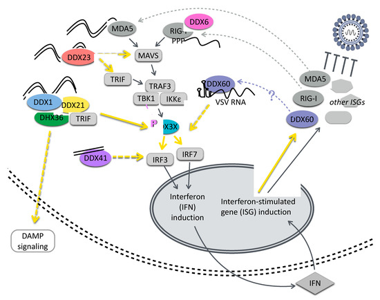 - Ahmad, S.; Hur, S. Helicases in antiviral immunity: Dual properties as sensors and effectors. Trends Biochem. Sci. 2015, 40, 576–585. [Google Scholar] [CrossRef]