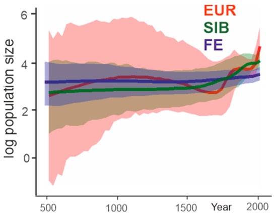 Bayesian model averaging was performed using the bModelTest package []. Next, different clock assumptions (relaxed log-normal, relaxed exponential, and strict) and population models (constant size, exponential growth, and Bayesian skyline) were compared by a Bayes factors test. Marginal likelihood was calculated using Path Sampler implemented in the Beast 2.5.1 []. The combinations of models with the highest Bayes factor were strict clock/Bayesian skyline, relaxed log-normal/exponential growth, and relaxed log-normal/constant size for European, Siberian, and Far-Eastern subtypes, respectively.