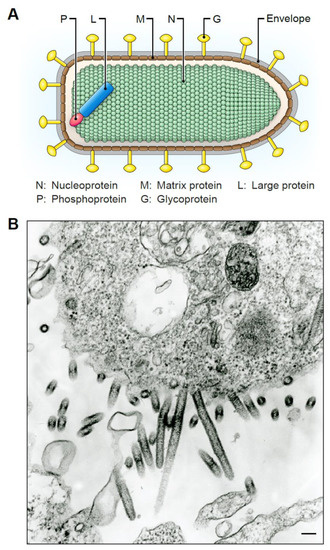 - Ge, P.; Tsao, J.; Schein, S.; Green, T.J.; Luo, M.; Zhou, Z.H. Cryo-EM model of the bullet-shaped vesicular stomatitis virus. Science 2010, 327, 689–693. [Google Scholar] [CrossRef]