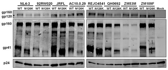 3.3. N126K Mutation Does Not Affect the Expression of Viral Env Glycoprotein but Causes Deglycosylation in Gp41