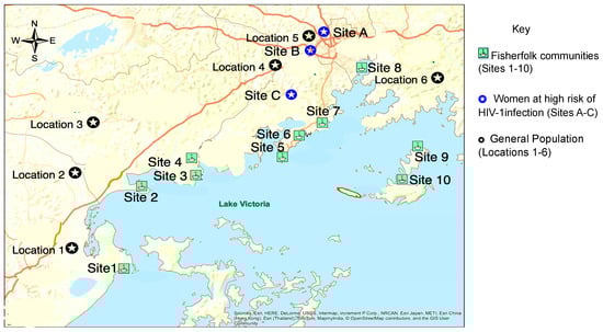 - Asiki, G.; Mpendo, J.; Abaasa, A.; Agaba, C.; Nanvubya, A.; Nielsen, L.; Seeley, J.; Kaleebu, P.; Grosskurth, H.; Kamali, A. HIV and syphilis prevalence and associated risk factors among fishing communities of Lake Victoria, Uganda. Sex. Transm. Infect. 2011, 87, 511–515. [Google Scholar] [CrossRef] [PubMed]