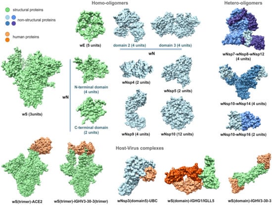 - Su, D.; Lou, Z.; Sun, F.; Zhai, Y.; Yang, H.; Zhang, R.; Joachimiak, A.; Zhang, X.C.; Bartlam, M.; Rao, Z. Dodecamer structure of severe acute respiratory syndrome coronavirus non-structural protein nsp10. J. Virol. 2006, 80, 7902–7908. [Google Scholar] [CrossRef] [PubMed]