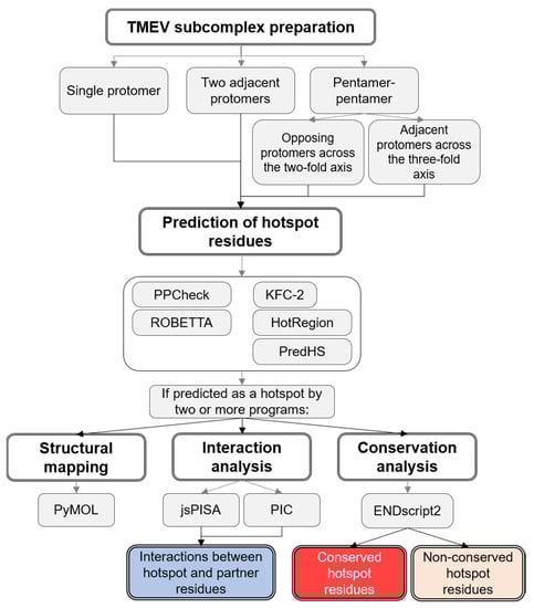 An overview of the methodology used to identify hotspot residues within the intraprotomer, interprotomer and interpentamer interfaces of TMEV is provided in Figure 1.