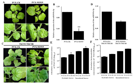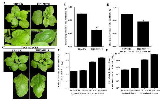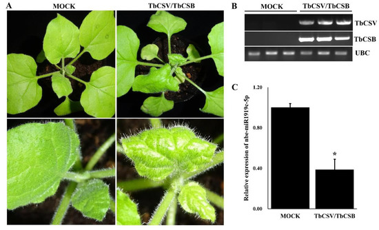 Du, J.; Wu, R.; Liu, Z.; Sun, M.; Ghanem, H.; Li, M.; Wu, G.; Qing, L. Suppression of nbe-miR1919c-5p Expression in Nicotiana benthamiana Enhances Tobacco Curly Shoot Virus and Its Betasatellite Co-Infection. Viruses 2020, 12, 392. https://doi.org/10.3390/v12040392