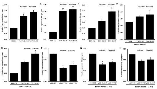 Du J, Wu R, Liu Z, Sun M, Ghanem H, Li M, Wu G, Qing L. Suppression of nbe-miR1919c-5p Expression in Nicotiana benthamiana Enhances Tobacco Curly Shoot Virus and Its Betasatellite Co-Infection. Viruses. 2020; 12(4):392. https://doi.org/10.3390/v12040392