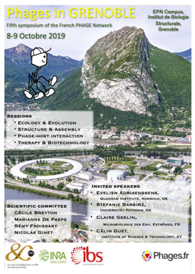 The fifth meeting of the French Phage Network (Phages in Grenoble), was supported by IBS (Institute for Structural Biology, Grenoble), CNRS (INEE and INSB institutes) and INRA. IBS acknowledges integration into the Interdisciplinary Research Institute of Grenoble (IRIG, CEA). We thank all the authors that contributed to the meeting.