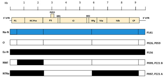 | PVY Genotype | NTNa | NWi | Recombinant Mixed Infection 1 | O | NTNa+O | Na-N | O+NWi | O+Na-N | Eu-N |
