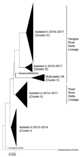 - Yu, D.; Xiang, G.; Zhu, W.; Lei, X.; Li, B.; Meng, Y.; Yang, L.; Jiao, H.; Li, X.; Huang, W.; et al. The re-emergence of highly pathogenic avian influenza H7N9 viruses in humans in mainland China, 2019. Eurosurveillance 2019, 24, 1900273. [Google Scholar] [CrossRef] [PubMed]