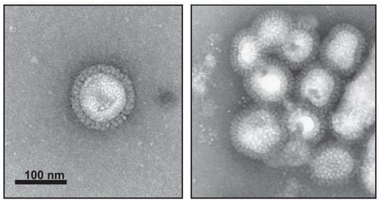 - Lindsay, B.J.; Bonar, M.M.; Costas-Cancelas, I.N.; Hunt, K.; Makarkov, A.I.; Chierzi, S.; Krawczyk, C.M.; Landry, N.; Ward, B.J.; Rouiller, I. Morphological characterization of a plant-made virus-like particle vaccine bearing influenza virus hemagglutinins by electron microscopy. Vaccine 2018, 36, 2147–2154. [Google Scholar] [CrossRef]
