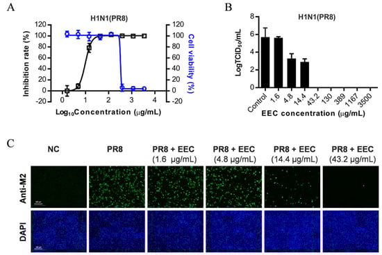 3.1. EEC Inhibits Influenza Virus Replication on A549 Cells