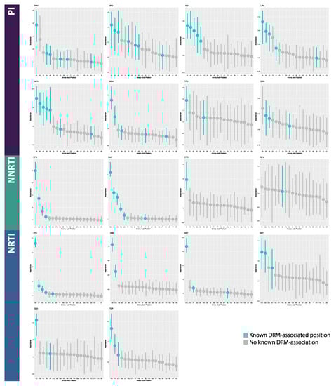 Drug resistance in treatment-naive patients coinfected with HIV and HCV is not well studied []. Yet, HIV/HCV coinfection has been associated with selection patterns at DRM loci distinct from those of mono-infected HIV patients [], and so data from both viruses may be informative for drug resistance patterns in coinfected patients. In future work, an interpretable deep learning approach could be used to identify drug resistance patterns across both viral genomes in order to account for all possible evolutionary pathways for drug resistance. Moreover, drug resistance develops in other viruses, and thus this approach could be applied to other viruses of interest. Particularly, the recent SARS-CoV-2 pandemic has instigated the use of drug repurposing [], highlighting the importance of characterizing antiviral drug resistance in HIV-1 patients so that this knowledge can be readily adapted to other infectious agents for which previously tested ART drugs may have clinical utility.