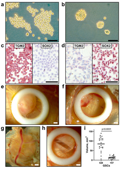 3.2. Implantation of Human GSCs on CAM Leads to Tumor Growth