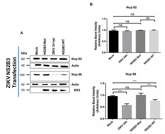 3.3. NS2B3 Protease of DENV and ZIKV Is Responsible for Nups Cleavage/Degradation