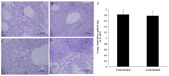 - Pantin-Jackwood, M.J.; Smith, D.M.; Wasilenko, J.L.; Cagle, C.; Shepherd, E.; Sarmento, L.; Kapczynski, D.R.; Afonso, C.L. Effect of age on the pathogenesis and innate immune responses in Pekin ducks infected with different H5N1 highly pathogenic avian influenza viruses. Virus Res. 2012, 167, 196–206. [Google Scholar] [CrossRef] [PubMed]