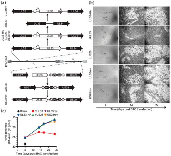 - Stanton, R.J.; Baluchova, K.; Dargan, D.J.; Cunningham, C.; Sheehy, O.; Seirafian, S.; McSharry, B.P.; Neale, M.L.; Davies, J.A.; Tomasec, P.; et al. Reconstruction of the complete human cytomegalovirus genome in a BAC reveals RL13 to be a potent inhibitor of replication. J. Clin. Investig. 2010, 120, 3191–3208. [Google Scholar] [CrossRef]