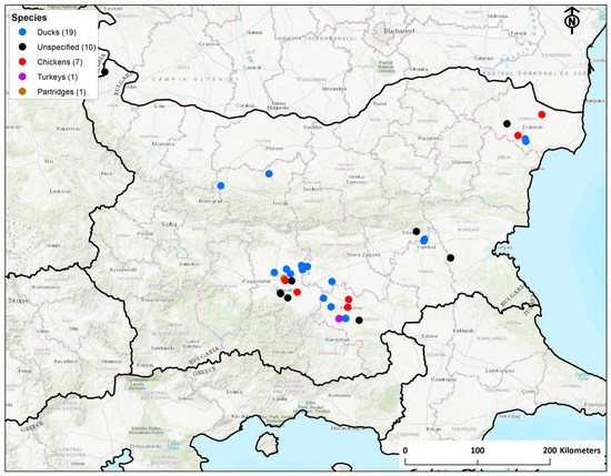 - PAFF Avian. PAFF Avian Influenza in Bulgaria; PAFF Avian: Bulgaria, Bulgaria, 2018. [Google Scholar]