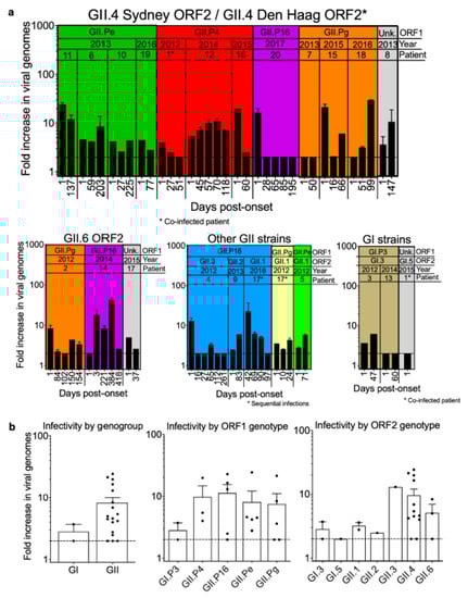 3.5. Infectivity of Noroviruses in Chronic Shedders