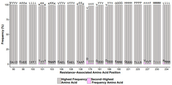 - Doring, M.; Buch, J.; Friedrich, G.; Pironti, A.; Kalaghatgi, P.; Knops, E.; Heger, E.; Obermeier, M.; Däumer, M.; Thielen, A.; et al. geno2pheno[ngs-freq]: A genotypic interpretation system for identifying viral drug resistance using next-generation sequencing data. Nucleic Acids Res. 2018, 46, W271–W277. [Google Scholar] [CrossRef]