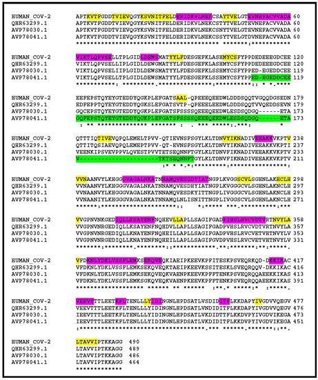 The nsp3 segment, delineated as highly variable in the above comparison between the human SARS-CoV-2 and its closest animal homologs, is also the most divergent upon alignment of the human SARS-CoV-2 with the previous SARS-CoV-1 (responsible of the 2002 epidemics) [12], and even more dissimilar in the MERS-CoV (agent of the Middle East respiratory syndrome) [13] (Figure 2). In particular, multiple deletions and insertions make it unlikely that these homologous regions could adopt identical folds and perform similar functions.