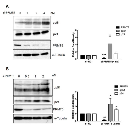 The following are available online at https://www.mdpi.com/1999-4915/12/6/650/s1, Table S1: Primer sequences for qRT-PCR used in the study, Figure S1: Effect of PRMT5 knockdown on gp51 electrophoretic mobility. Figure S2: Effect of PRMT5 knockdown and CMP5 treatment on Gag processing.
