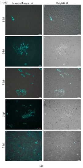3.2. Viral Genome Load in Human but Not in Bovine Kidney Cells Increased Significantly with Time
