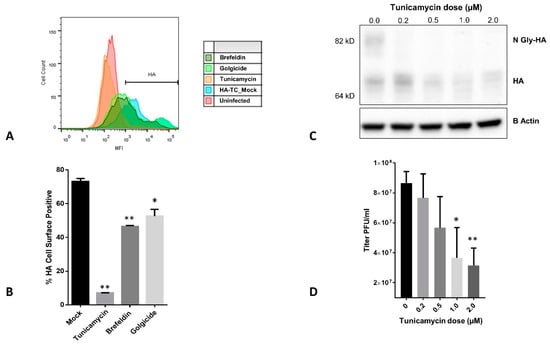 3.4. Effect of ER-Golgi Transport Inhibitors on HA Trafficking in IAV Infected Cells