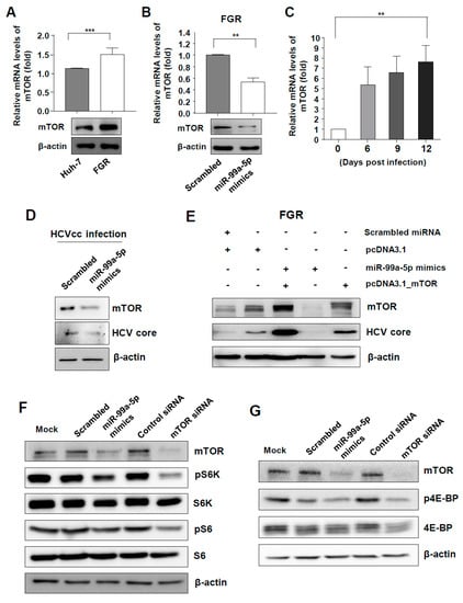 3.3. mTOR and Its Downstream Signal Was Targeted by miR-99a in HCV-Replicating Cells