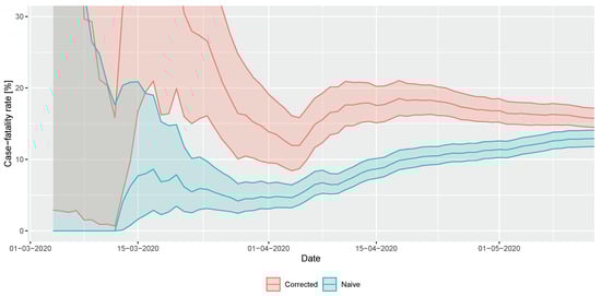 The CFR mentioned in the previous subsection is still not the true value of the fraction of fatal outcomes of all infections, as there is another source of bias, but this time leading to overestimation: the underascertainment of cases. This is a substantial issue now as a—precisely not yet known, but epidemiologically significant—fraction of the COVID-19 cases are asymptomatic or mildly symptomatic. Since in many countries testing was extended to contacts (and in a few instances, even random sampling was carried out), the confirmed cases include some asymptomatic cases as well.