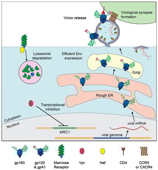 - Vigerust, D.J.; Egan, B.S.; Shepherd, V.L. HIV-1 Nef mediates post-translational down-regulation and redistribution of the mannose receptor. J. Leukoc. Biol. 2005, 77, 522–534. [Google Scholar] [CrossRef]