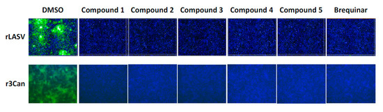 - Ngo, N.; Henthorn, K.S.; Cisneros, M.I.; Cubitt, B.; Iwasaki, M.; de la Torre, J.C.; Lama, J. Identification and mechanism of action of a novel small-molecule inhibitor of arenavirus multiplication. J. Virol. 2015, 89, 10924–10933. [Google Scholar] [CrossRef]
