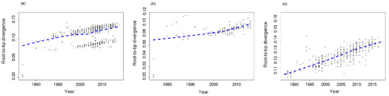 3.2. Root-to-Tip Divergence Analysis