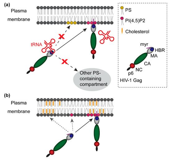 - the interplay between PI(4,5)P2 and tRNA in mediating specific localization of Gag to the PM,