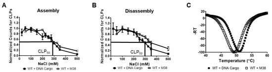 3.2. WT + M38 CLPs Have Slight Differences in Stability When Compared to WT + DNA CLPs