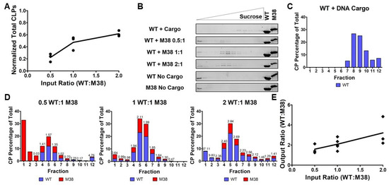 3.3. The Ratio of WT CP and M38 CP Incorporated into CLPs is Determined by input Ratios
