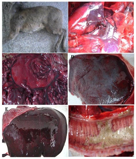 - Dalton, K.P.; Nicieza, I.; Balseiro, A.; Muguerza, M.A.; Rosell, J.M.; Casais, R.; Alvarez, A.L.; Parra, F. Variant rabbit hemorrhagic disease virus in young rabbits, Spain. Emerg. Infect. Dis. 2012, 18, 2009–2012. [Google Scholar] [CrossRef]