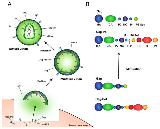 - Bell, N.M.; Lever, A.M. HIV Gag polyprotein: Processing and early viral particle assembly. Trends Microbiol. 2013, 21, 136–144. [Google Scholar] [CrossRef]