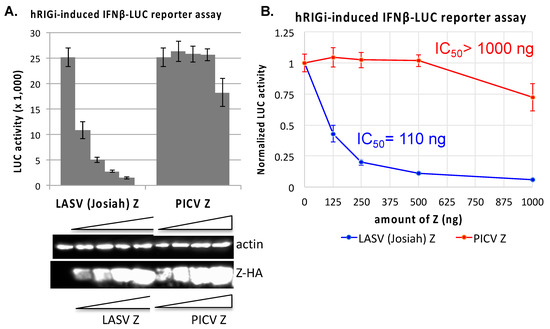 3.3. Evaluation of the Ability of Z Proteins of Different LASV Isolates to Inhibit hRIG-I Function
