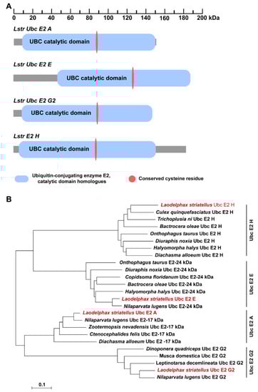 - Jones, D.; Crowe, E.; Stevens, T.A.; Candido, E.P.M. Functional and phylogenetic analysis of the ubiquitylation system in Caenorhabditis elegans: Ubiquitin-conjugating enzymes, ubiquitin-activating enzymes, and ubiquitin-like proteins. Genome Biol. 2001, 3, research0002.1. [Google Scholar] [CrossRef] [PubMed]