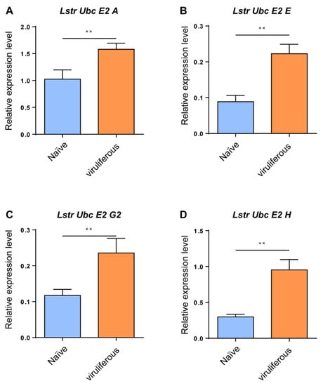 3.4. Rice Stripe Virus Increases LstrE2s Expression in Small Brown Planthopper Adults