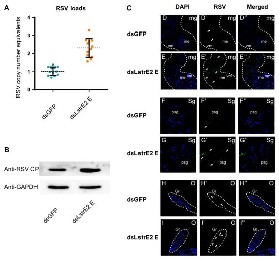 3.5. Repression of LstrE2 E via RNAi Increases RSV Load in Small Brown Planthopper