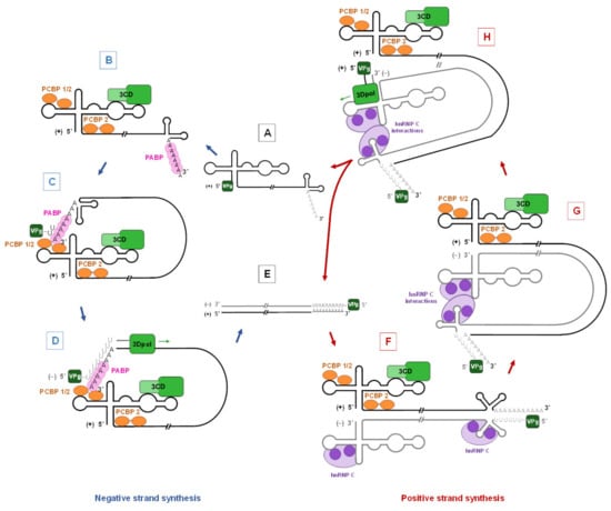- Herold, J.; Andino, R. Poliovirus RNA Replication Requires Genome Circularization through a Protein–Protein Bridge. Mol. Cell 2001, 7, 581–591. [Google Scholar] [CrossRef]