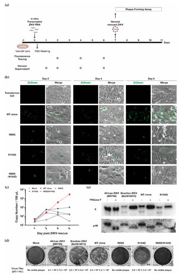 3.1. Removal of the N-glycan Site in ZIKV prM Resulted in Impaired Viral Gene Expression and No Infectious Virus