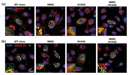 After we showed that the lack of prM N-glycan affected the secretion of the E protein, we hypothesized that the E protein might be trapped inside the ER due to the impaired secretion.